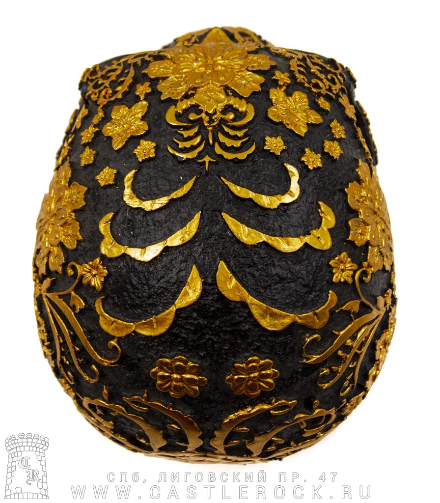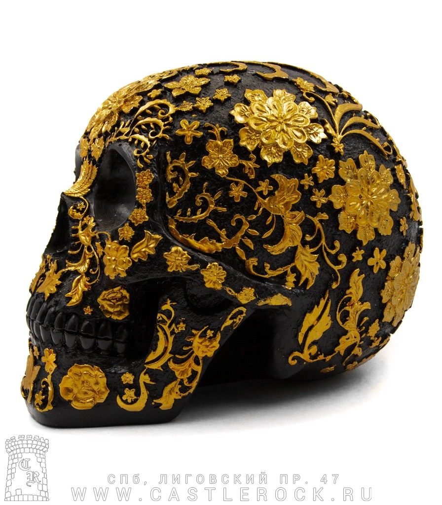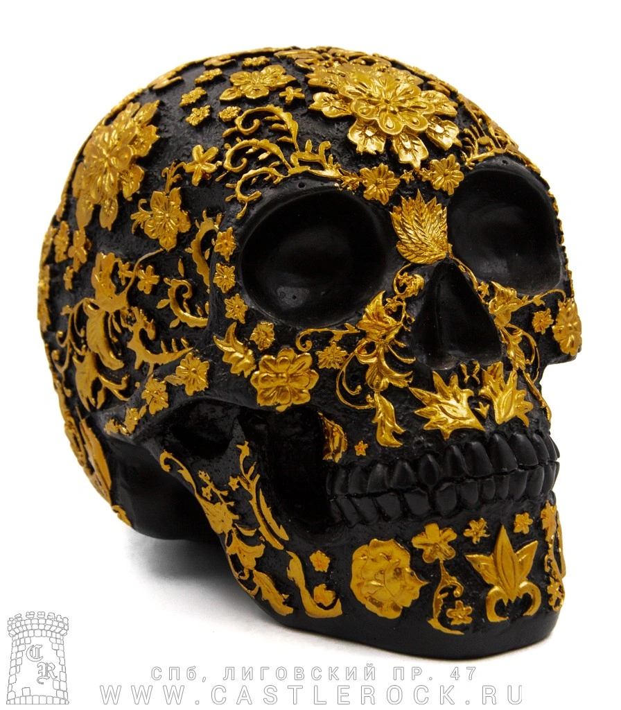 Статуэтка Череп Резной в Цветах (черный)
