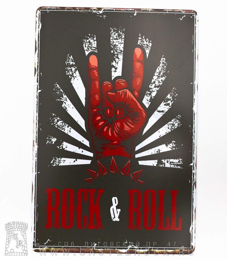 Табличка Коза "Rock & Roll" (черно-красная, белые лучи)