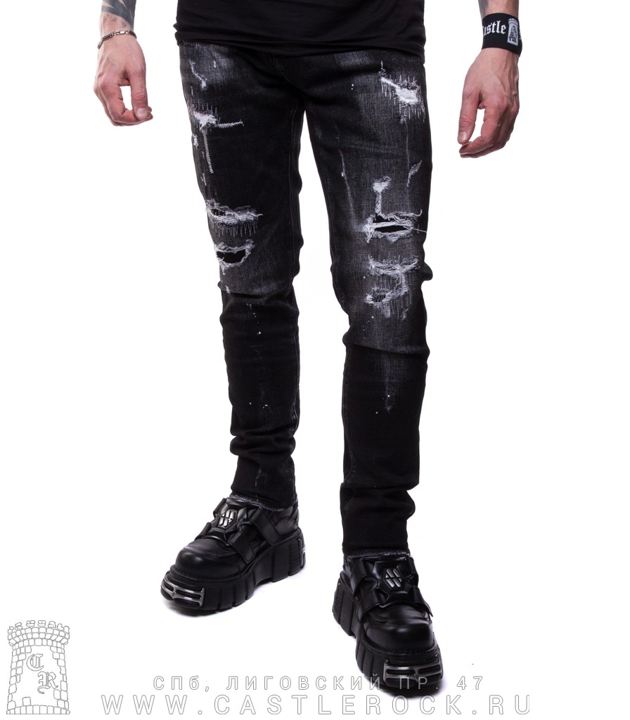 Джинсы Черные (протертые, с прострочкой, белые пятна)