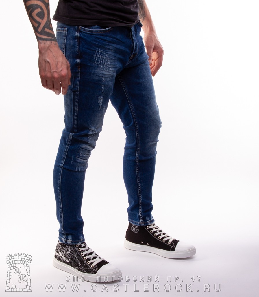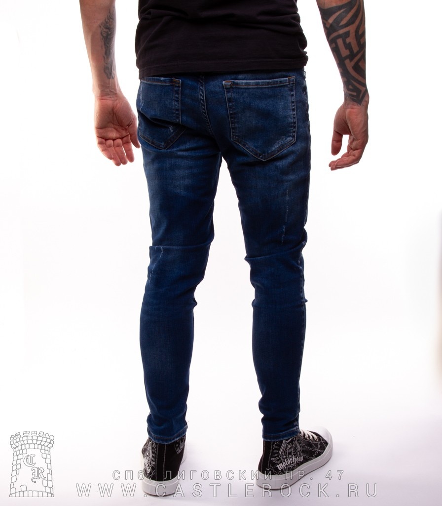 Джинсы Синие Темные (потертые, с отпечатками)