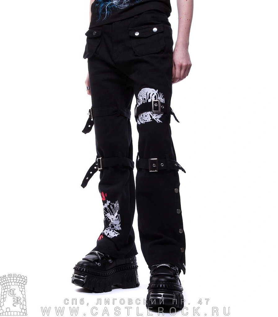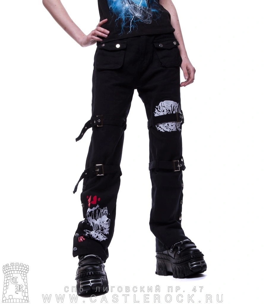 Джинсы женские с Принтами (ремни, кнопки, накладные карманы)