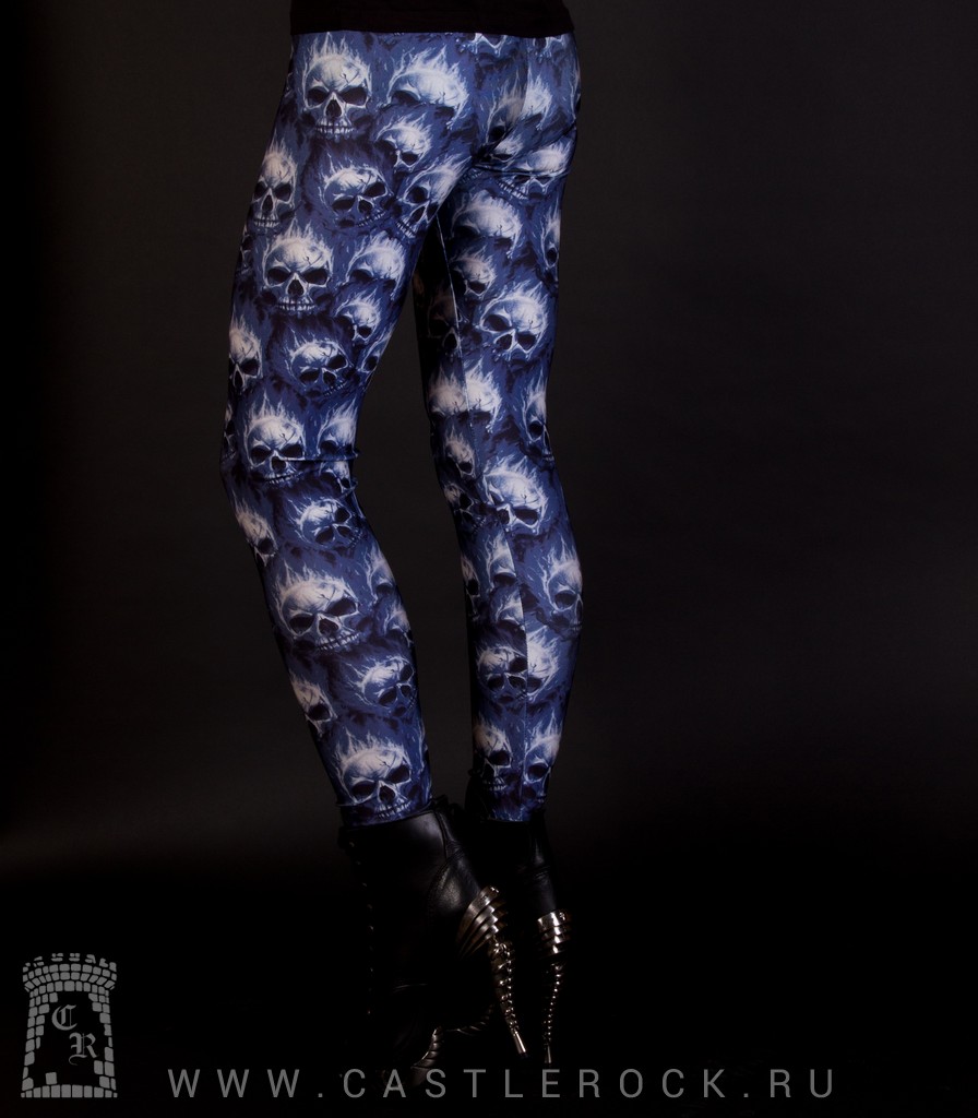 Легинсы (Лосины) Черепа в Синем Пламени