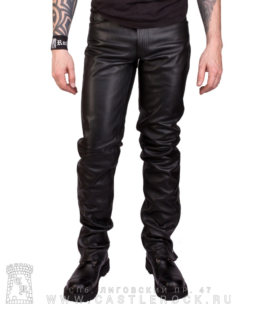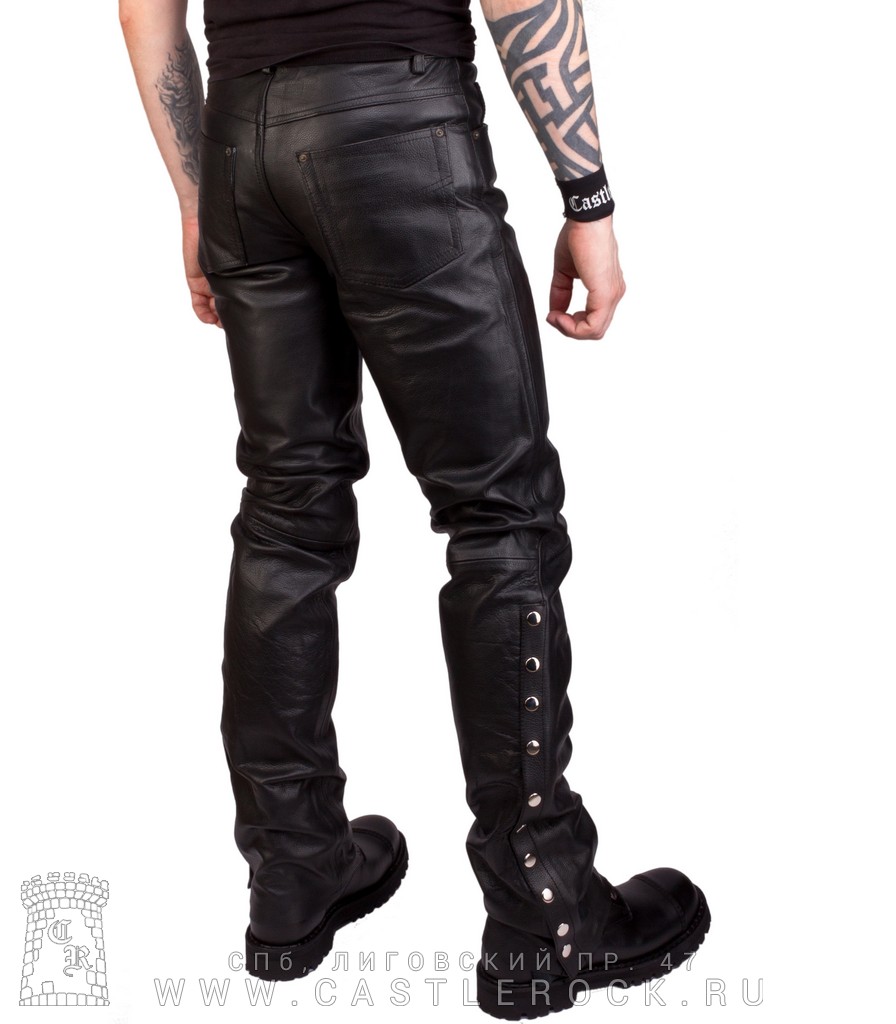 Штаны кожаные "First" с клепками (черные) изготовлены из прочной, мягкой воловьей (телячьей) кожи, приятные на ощупь. Подходят как для мотоэксплуатации, так и для повседневного ношения. Брюки имеют запас по длине, что дает возможность подгонять штанину по росту. Брюки имеют классический джинсовый крой с высокой посадкой и надежно защищают поясницу.