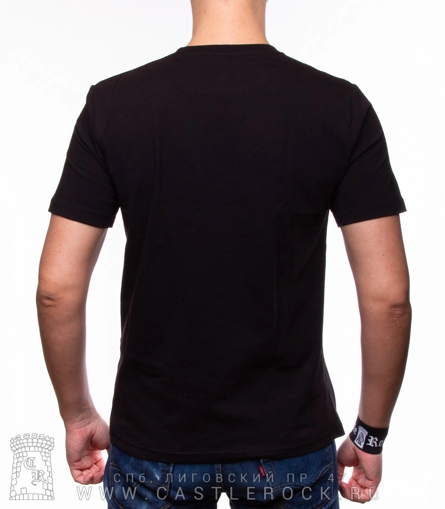 Футболка может быть как с надписью сзади, так и без.