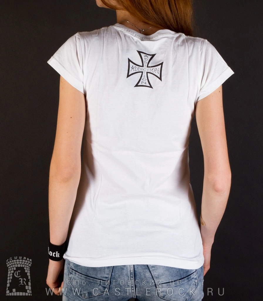 Женская футболка Addiction Мотоцикл "Motorcycle Clothing" (белая)