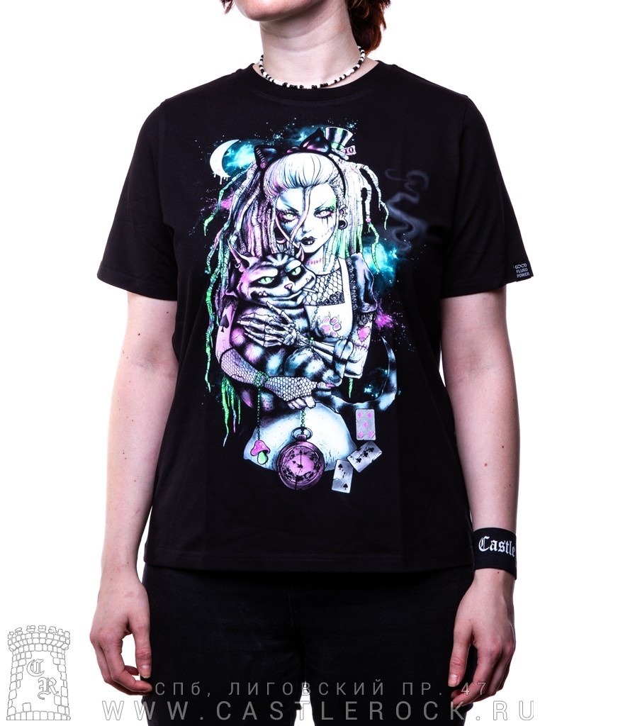 Женская футболка Алиса в Стране Чудес (зомби, прямая, светится)