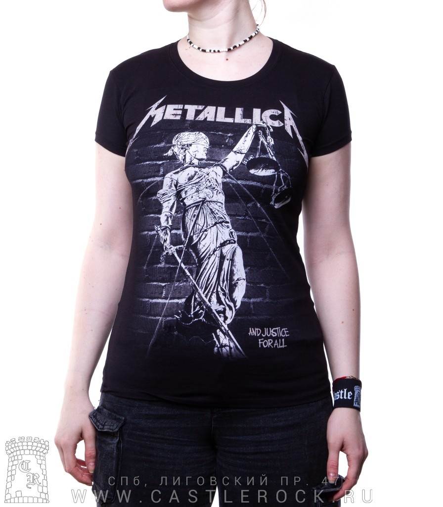 Женская футболка Metallica "And Justice For All" (ч/б, принт большой, стена)