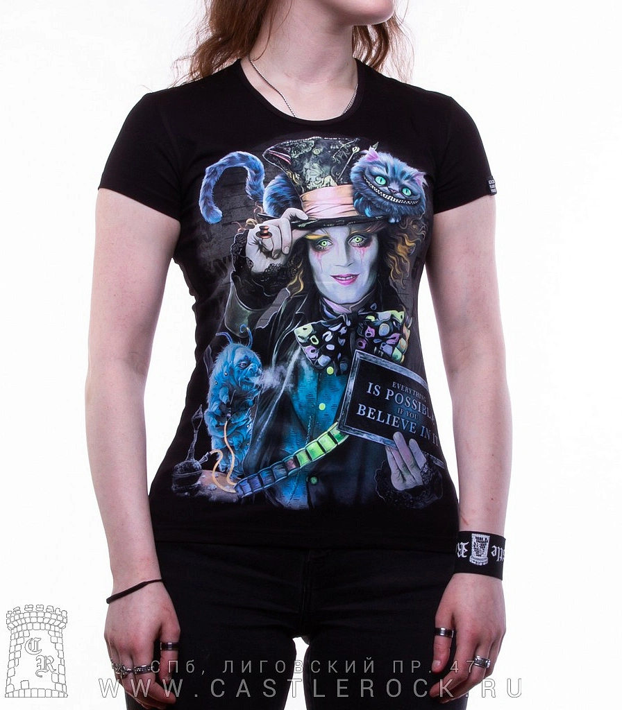 Женская футболка Шляпник и Чеширский Кот (светится)