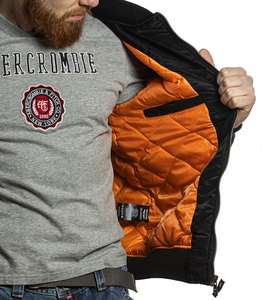 Мужской бомбер со стеганым подкладом. Классическая модель MA-1 без капюшона. Карманы утеплены флисом. На груди сьемный фирменный патч.