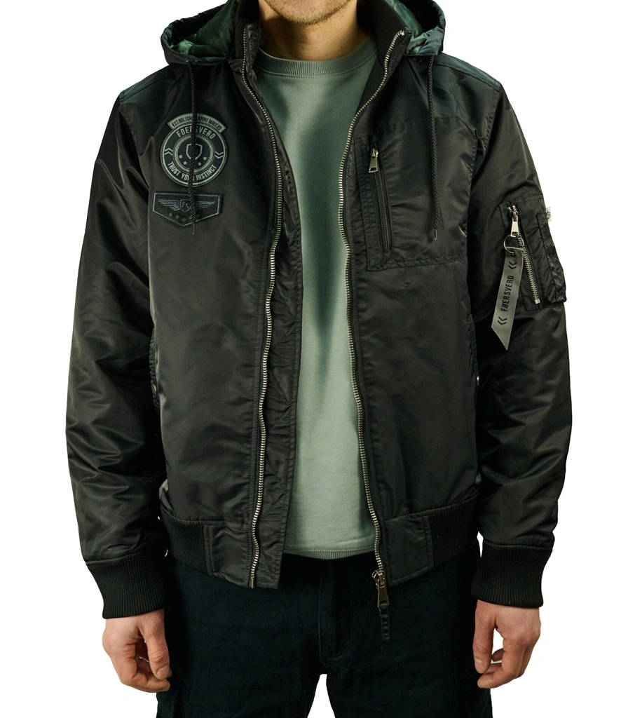 Куртка Пилот Foersverd Черная (патч, бомбер)