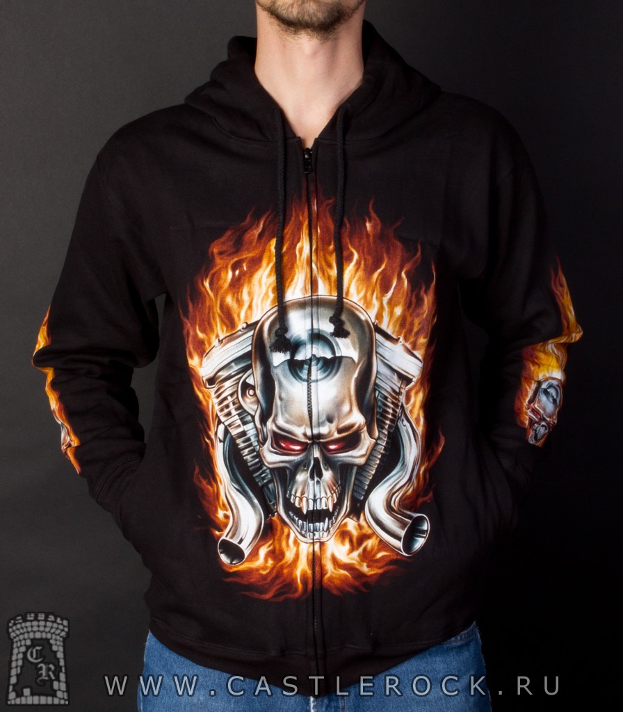 Балахон на молнии Скелет Байкера в Цепях и Смерть