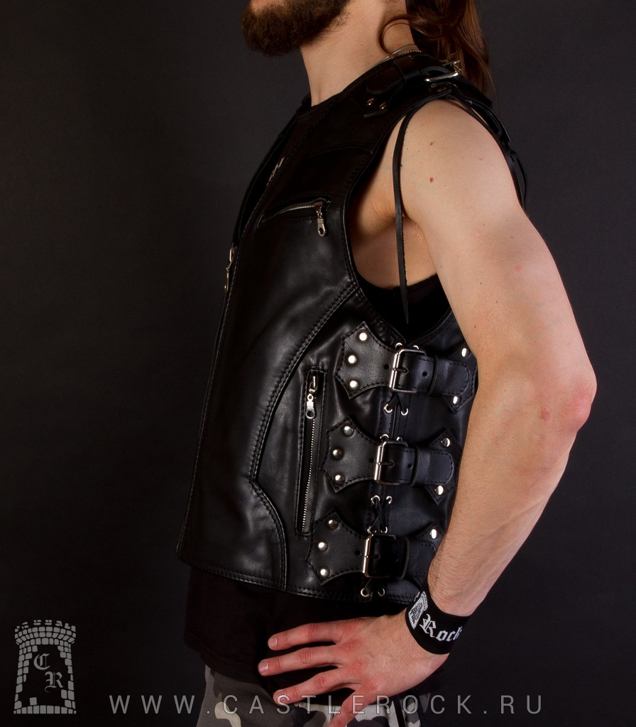 Жилет Байкерский кожаный на Молнии с Карманами (регулируемый)