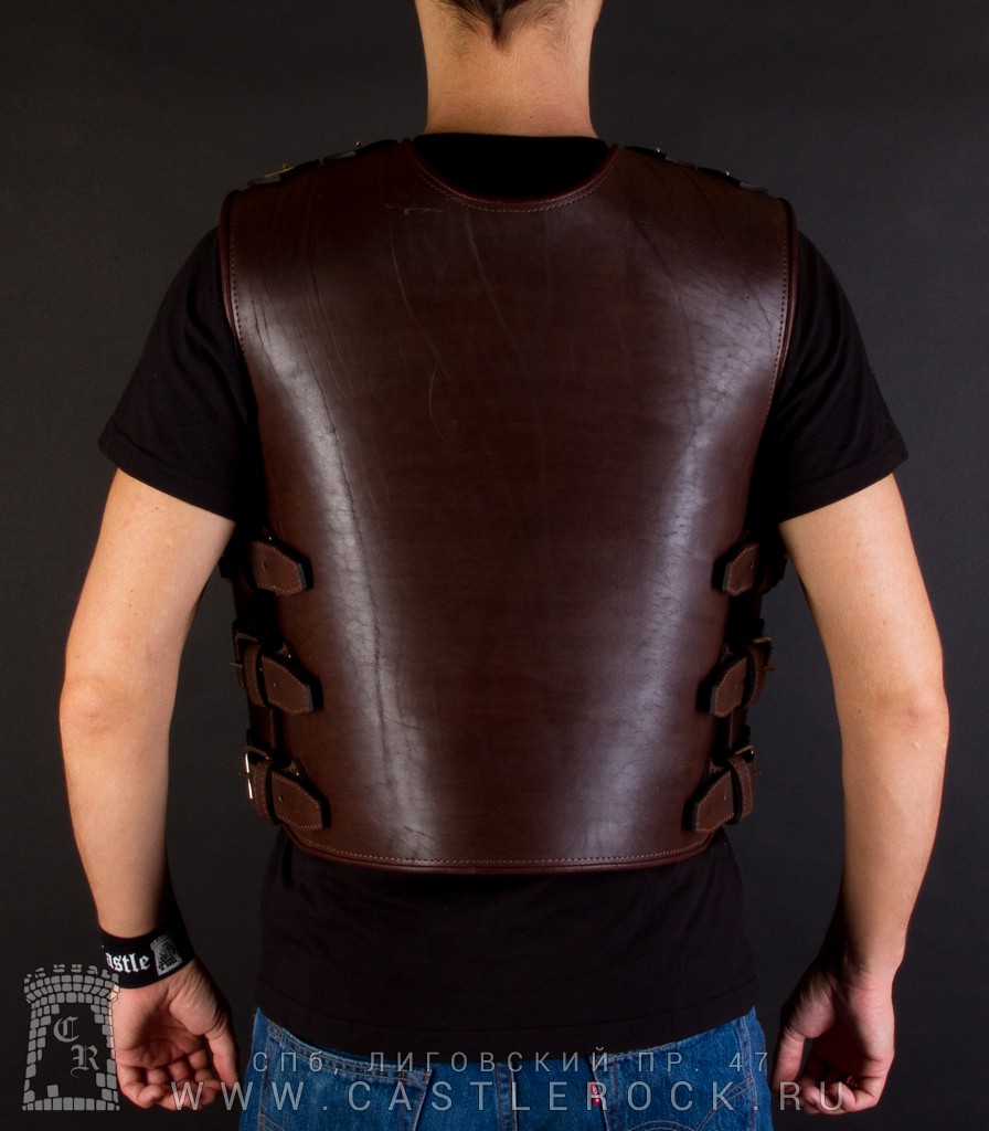 Жилет Байкерский кожаный с Карабинами (коричневый)