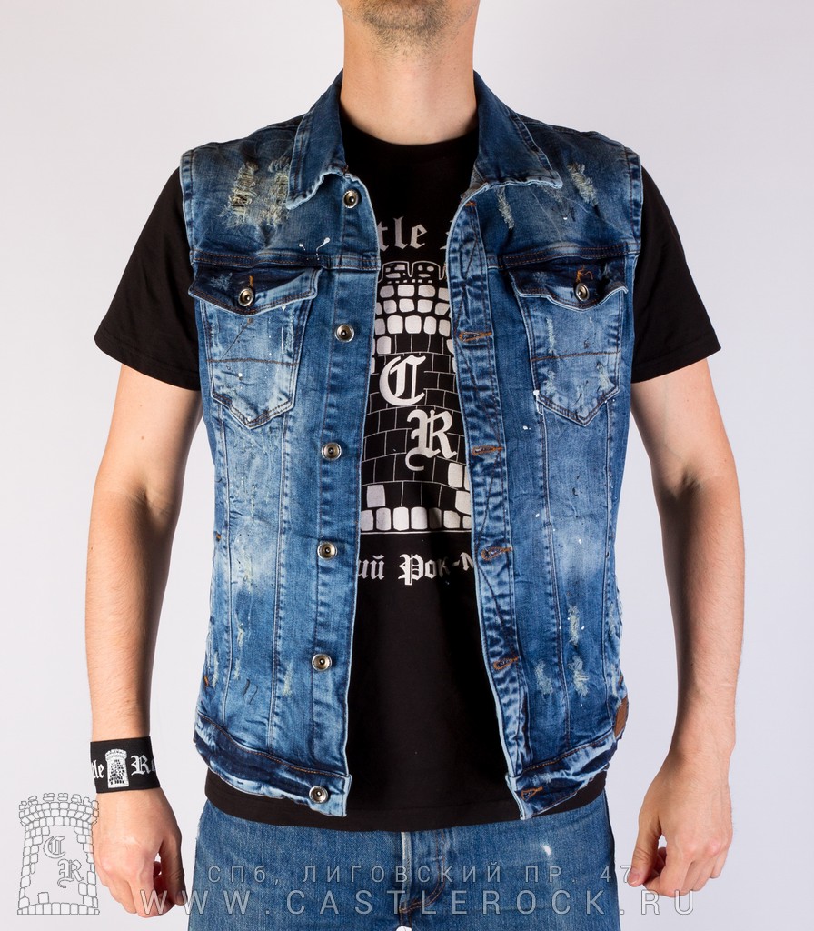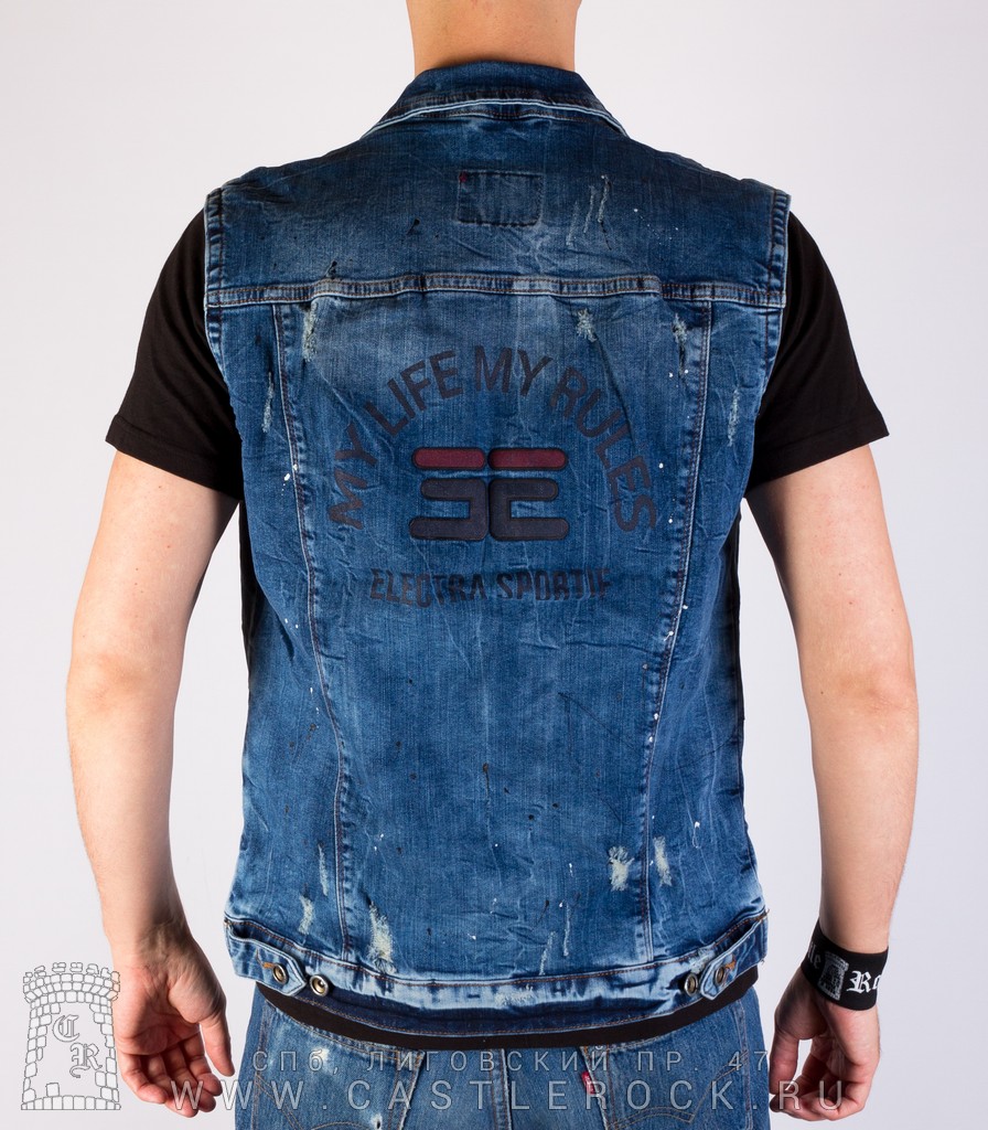 Жилет Джинсовый Синий "My Life My Rules" (потертый) 052-01
