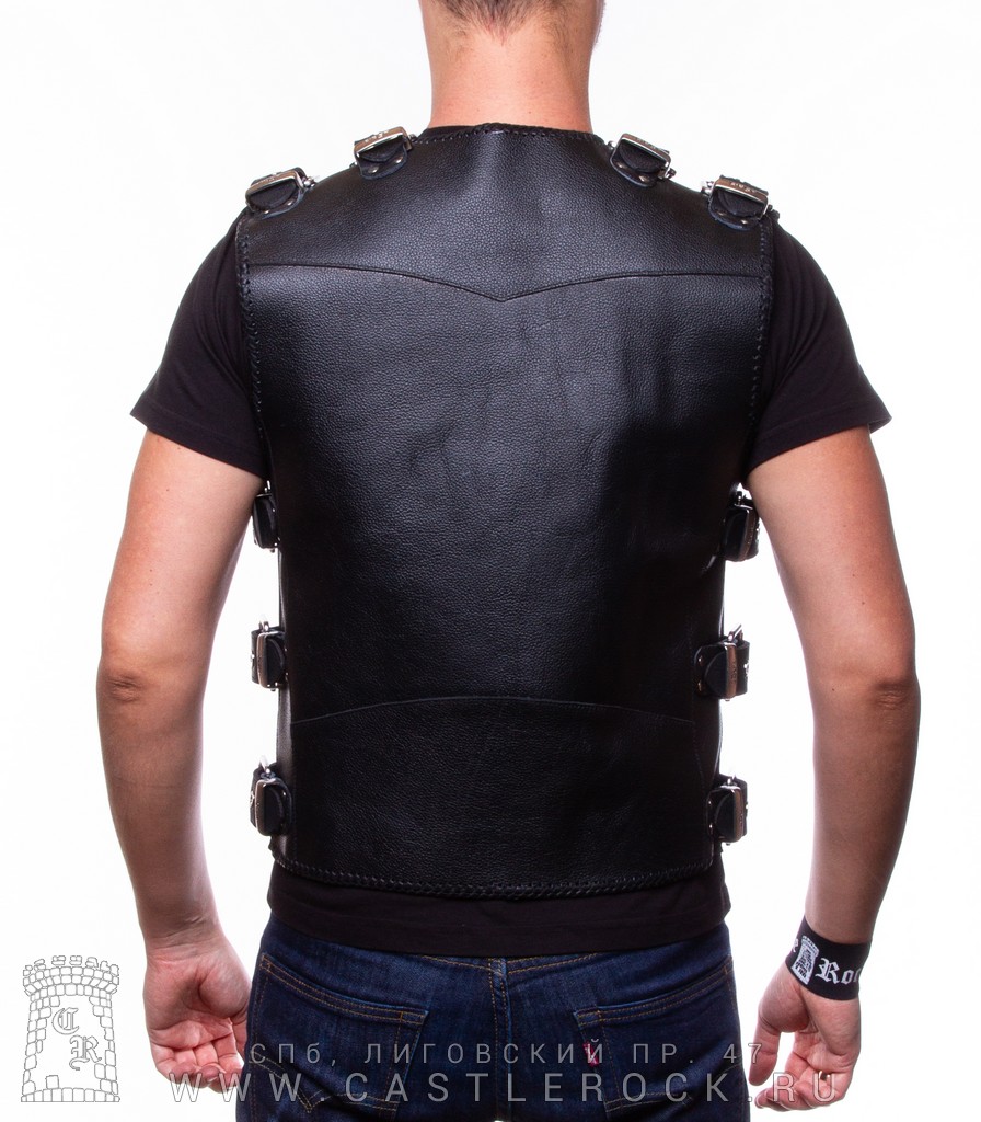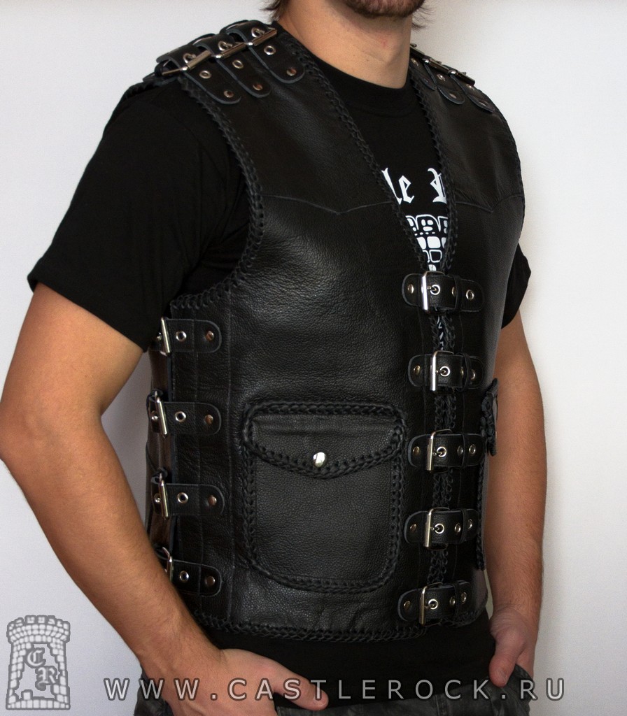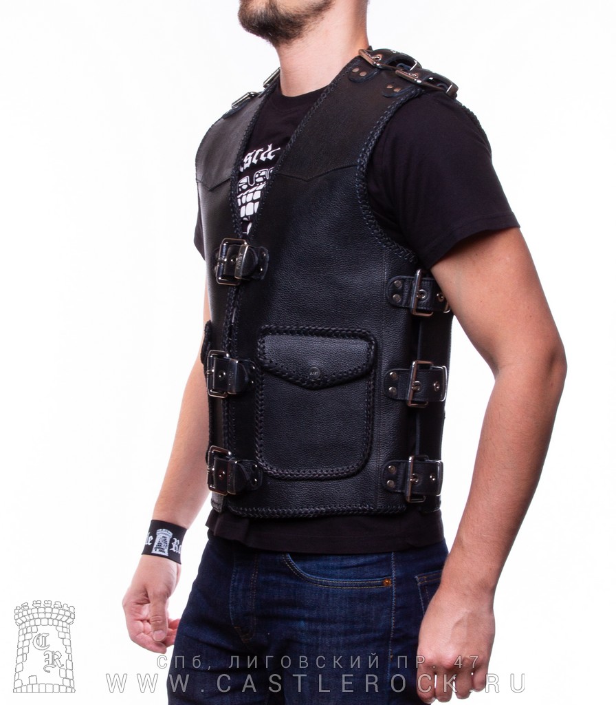 Жилет кожаный First с пряжками и карманами изготовлен из прочной, износостойкой буйволинной кожи. Подходит как для мотоэксплуатации, так и для повседневного ношения.