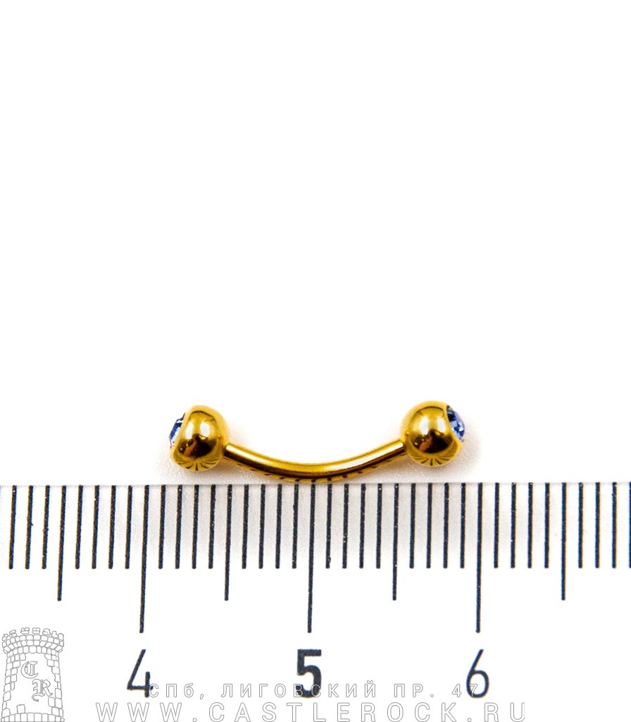 Микробанан Сталь Золотистый с Шариками со Стразами (синими светлыми) 1,2 х 10 х 4/4