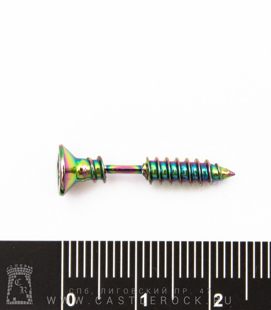 Обманка из хирургической стали марки 316L анодированная "бензиновая" в виде самореза.