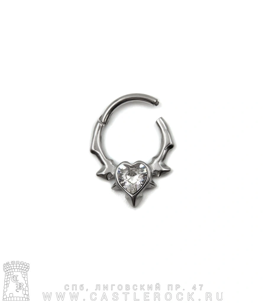 Кликер для септума Сталь Сердце (кристалл прозрачный)