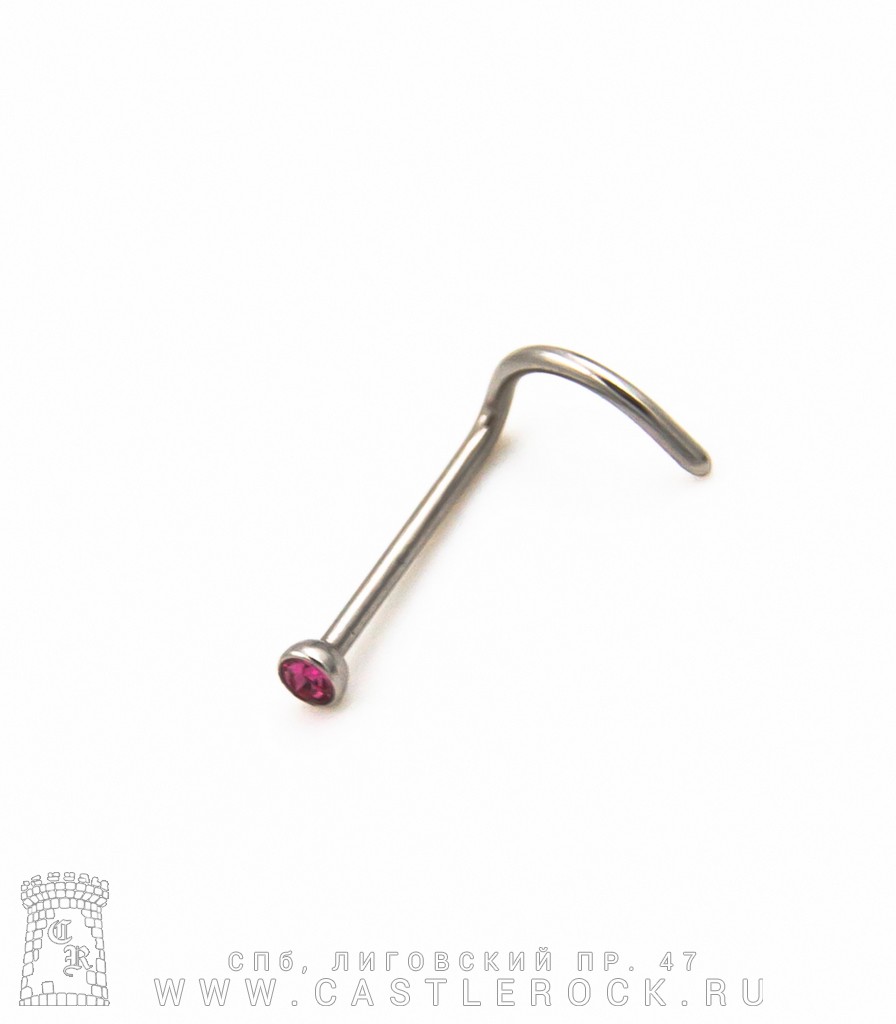 Крючок для носа Сталь со Стразом (розовым ярким) 0,8 х 8 х 2