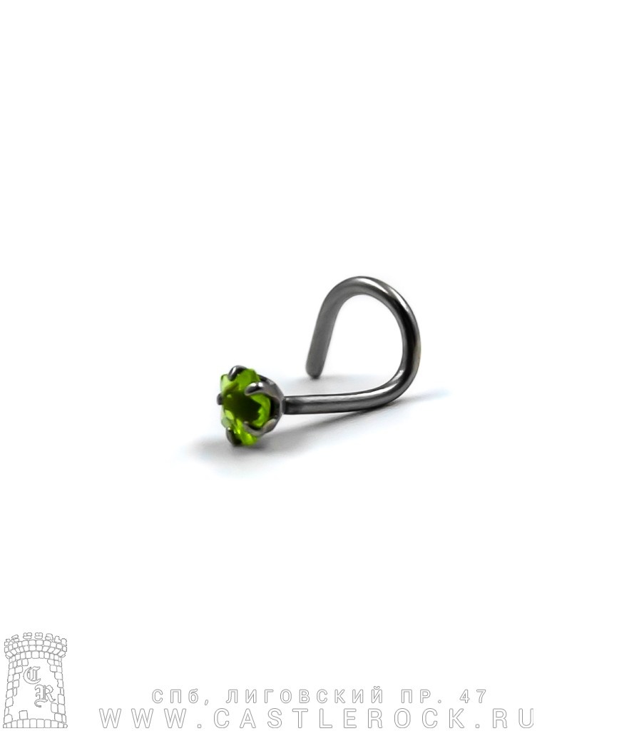 Крючок для носа Сталь со Стразом Звезда (зеленым) 0,8 х 6-8 х 3