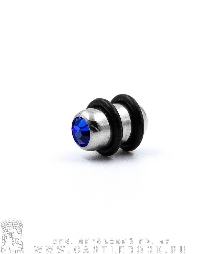 Плаг Сталь со Стразом (синим, с резинками) 8 мм