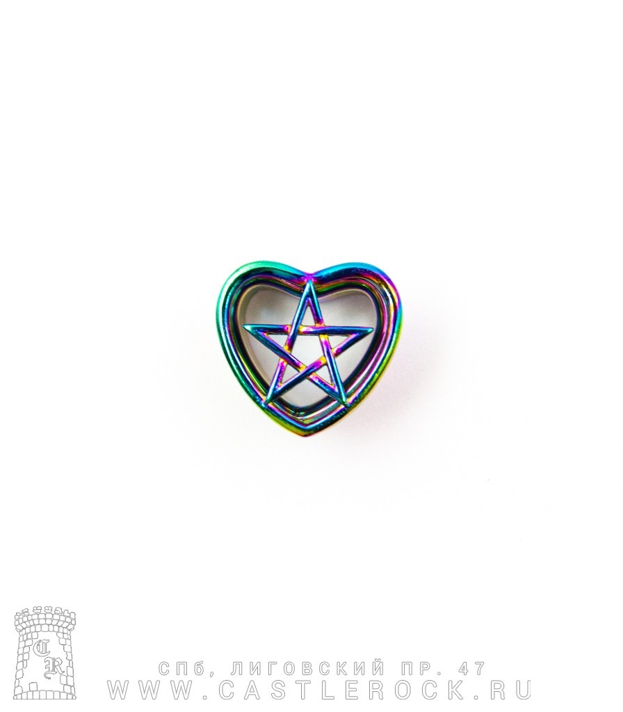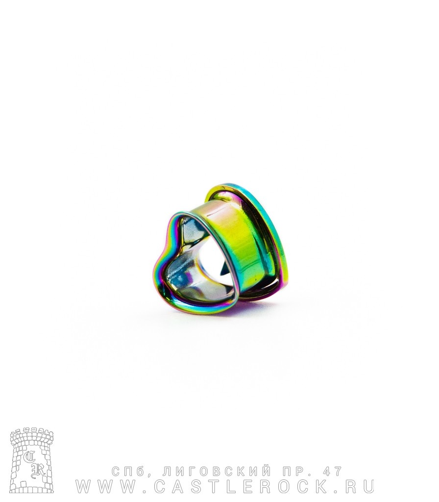 Плаг тонкостенный из хирургической стали марки 316L анодированный "бензиновый" в форме сердца. Подходит для прокола диаметром 14 мм.
