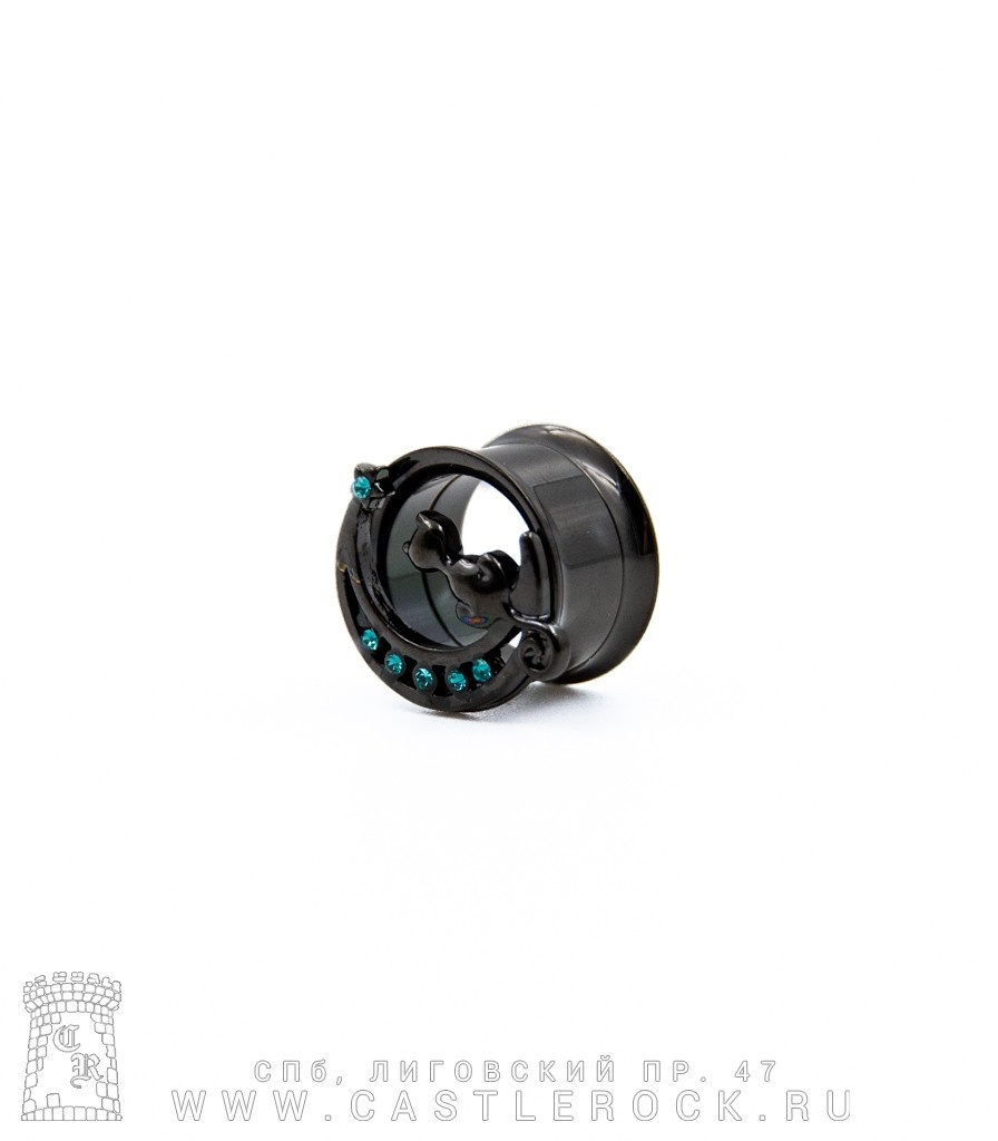 Плаг тонкостенный диаметром 14 мм с внутренней резьбой анодированный черный со стразами.