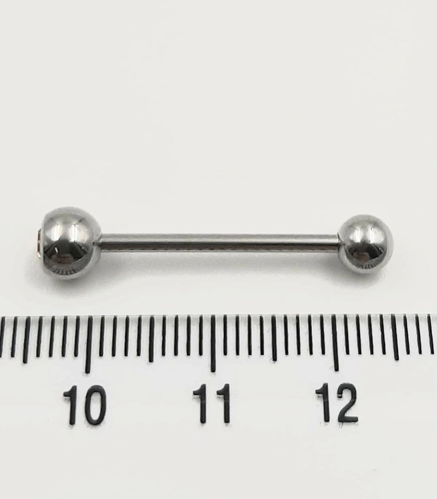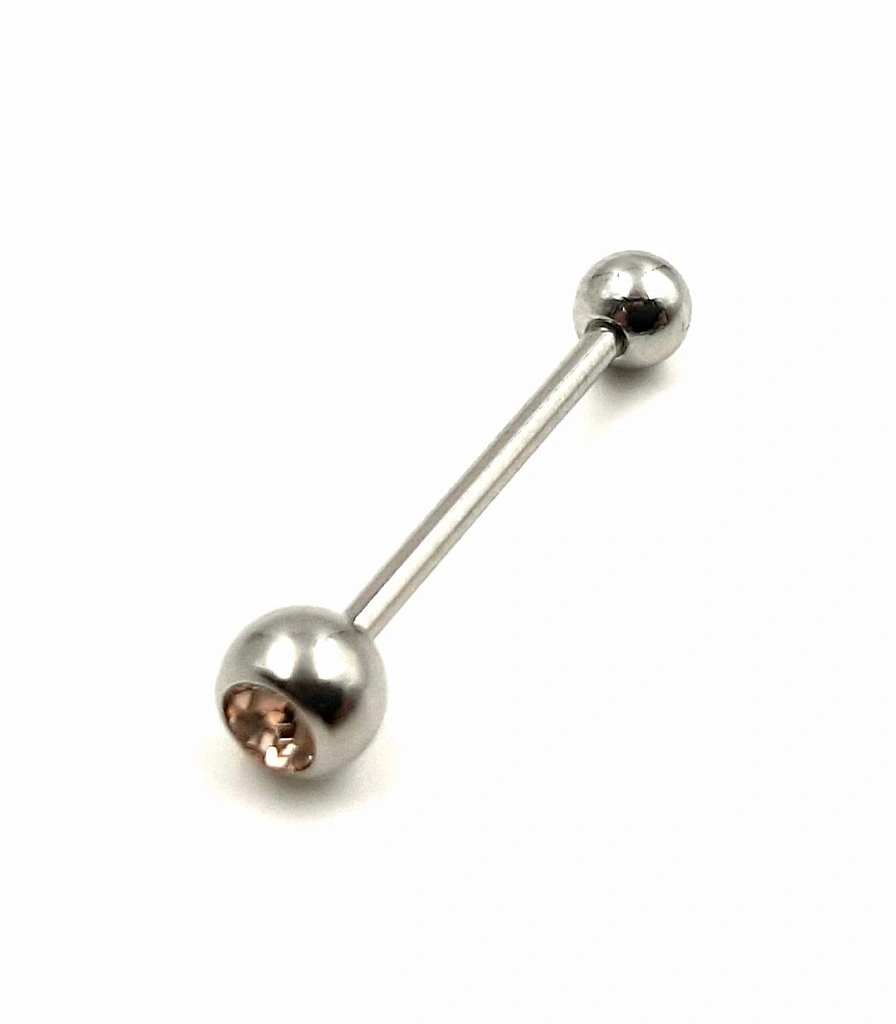 Штанга Сталь с Шариками со Стразом (бежевым) 1,6 х 20 х 5/6
