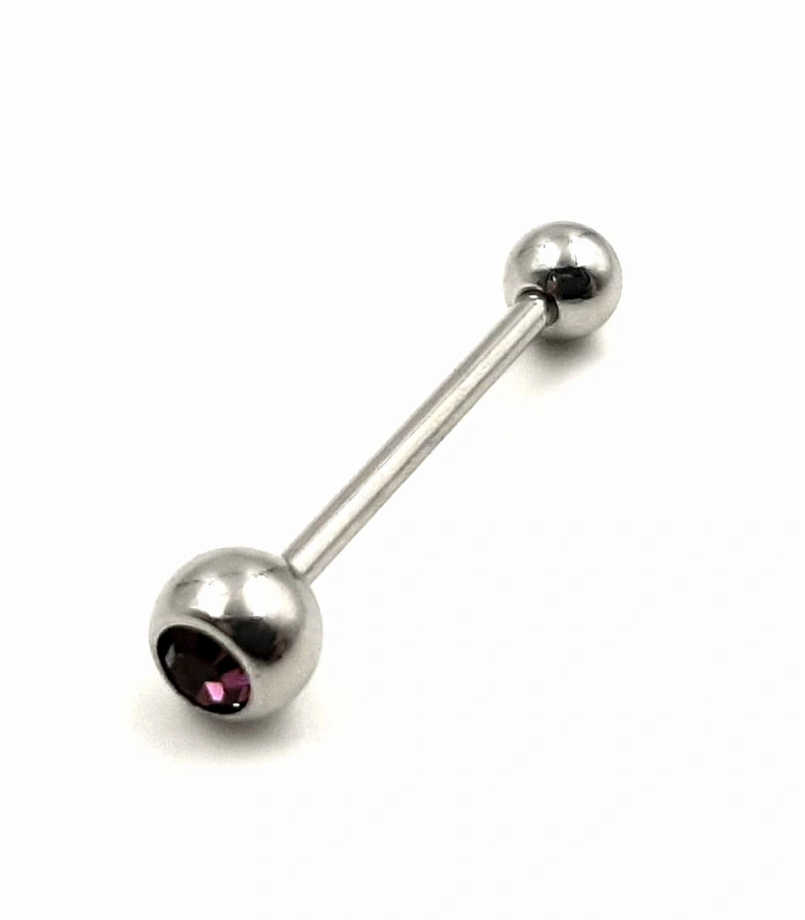 Штанга Сталь с Шариками со Стразом (фиолетовым) 1,6 х 20 х 5/6