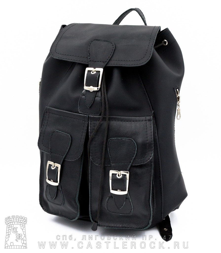 Рюкзак кожаный Черный (два кармана, комбинированная кожа)