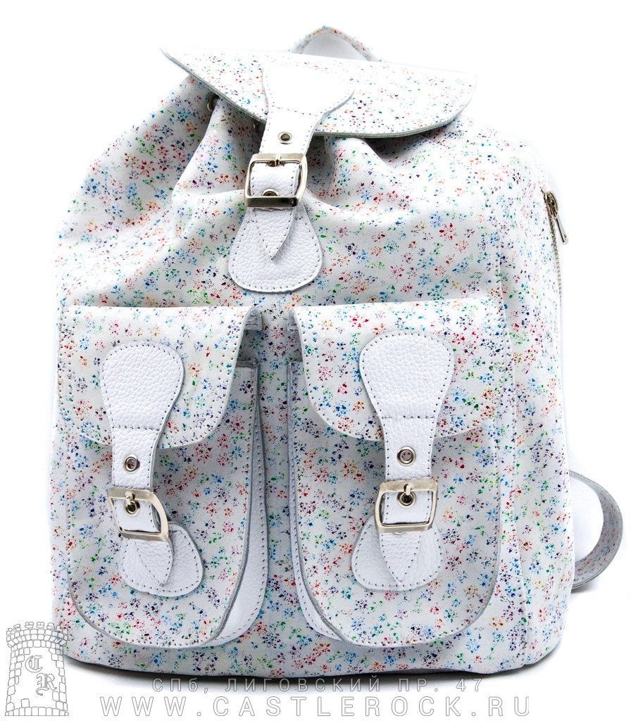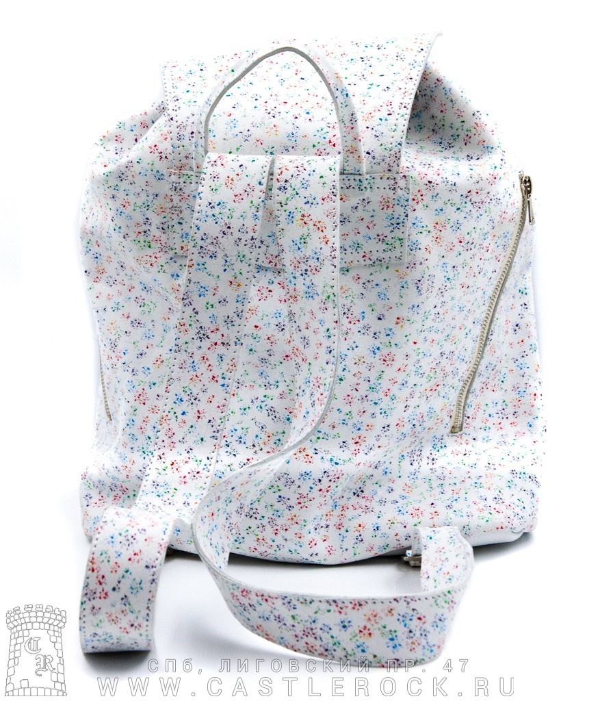 Рюкзак кожаный O'Skull Белый (брызги краски, два кармана)