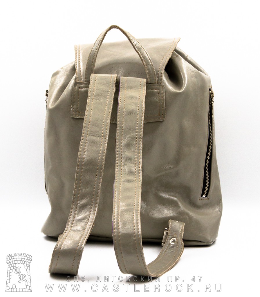 Рюкзак кожаный Серый (лакированный, два кармана)