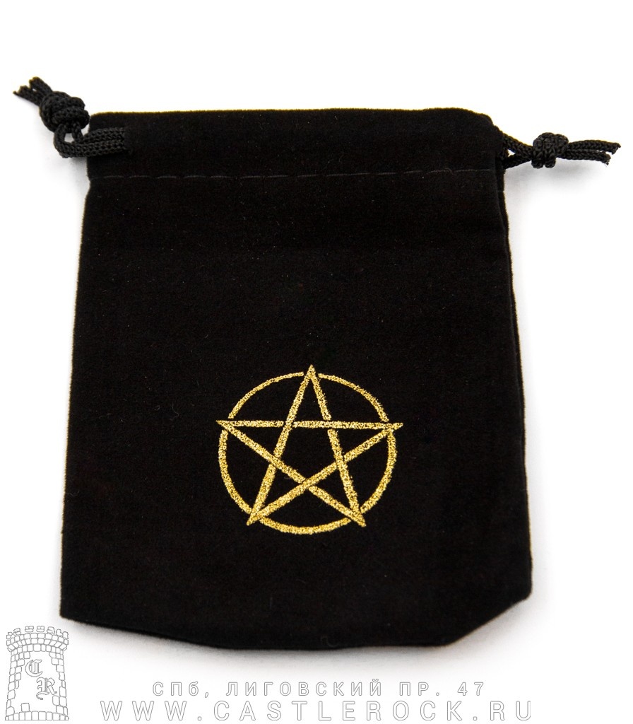 Мешочек бархатный Пентаграмма Золотистая (малый, черный)