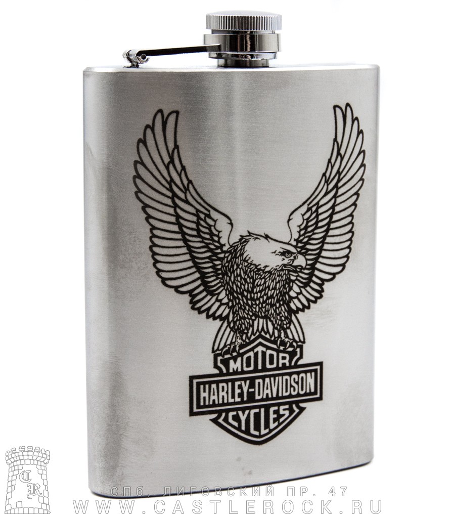 Фляга стальная с гравировкой Harley-Davidson (орел) 8 oz