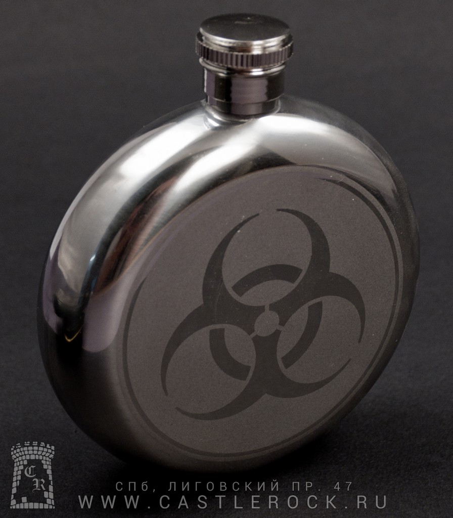 Фляга стальная с гравировкой и стеклом Biohazard 5 oz