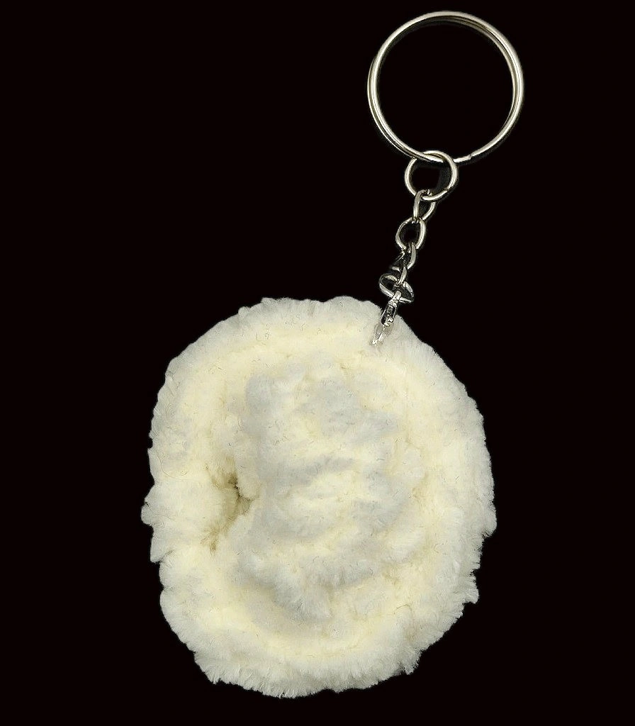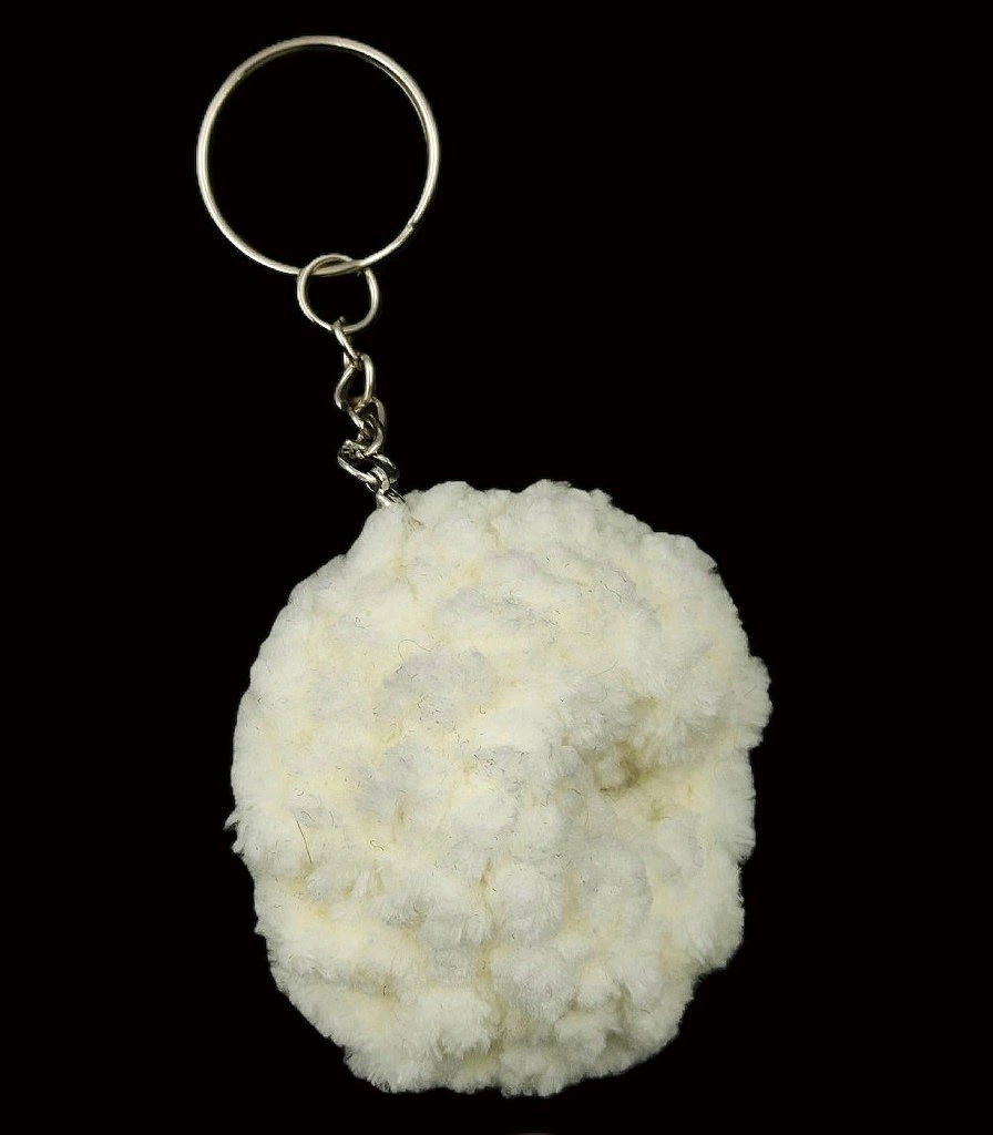 Вязаная игрушка-брелок ручной работы из плюшевой пряжи.