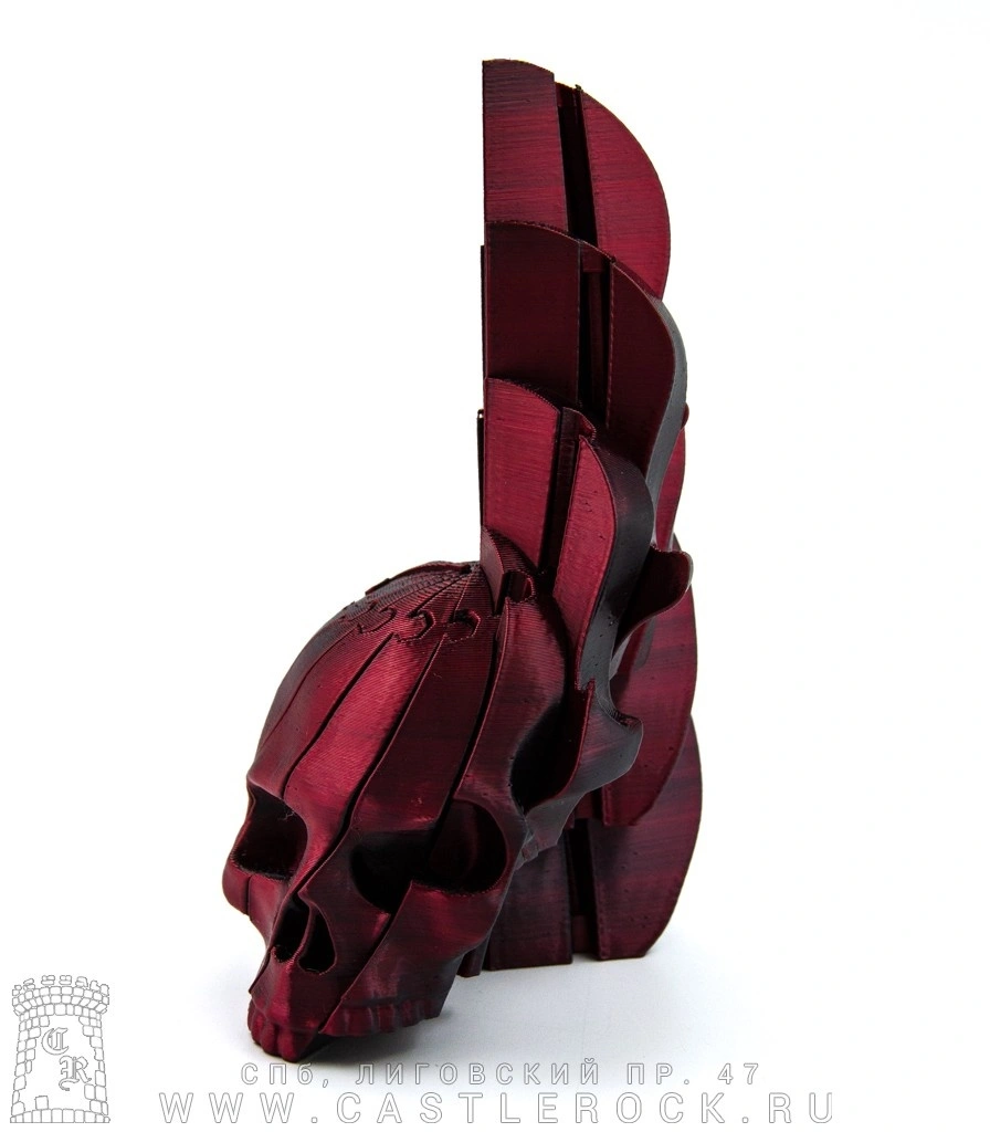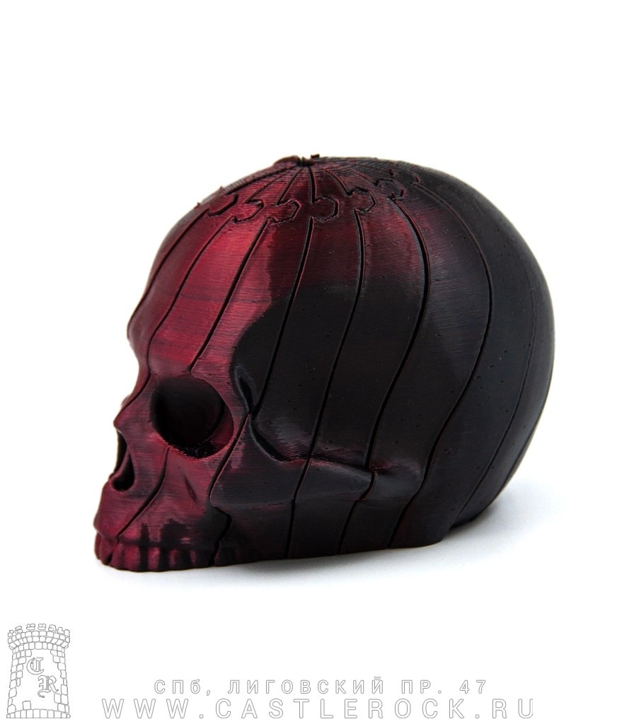 Игрушка-антистресс в виде черепа, изготовлена методом 3D печати из экологически безопасного пластика PLA Silk. Состоит из подвижных элементов, соединенных между собой по принципу "шип-паз".