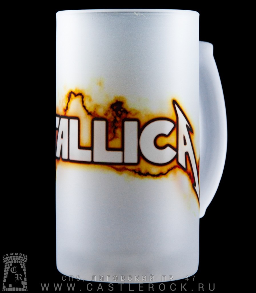 Кружка пивная стеклянная Metallica (надпись, молнии)