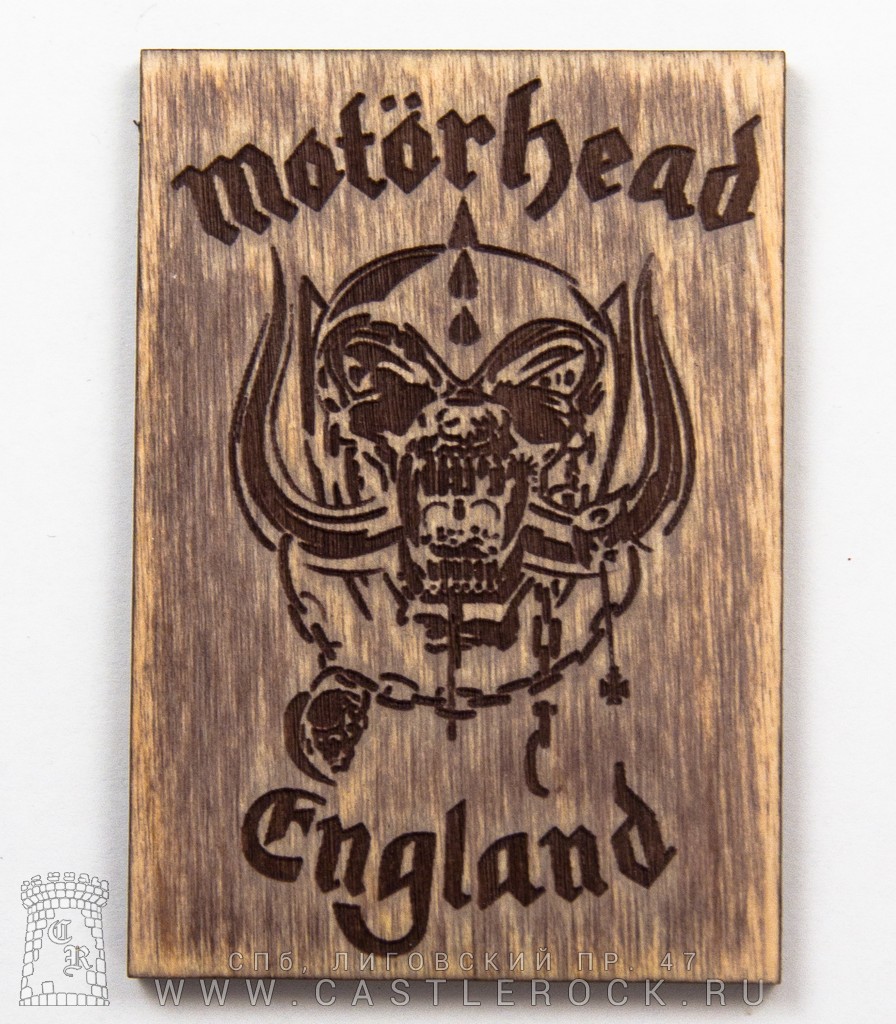 Магнит прямоугольный деревянный Motorhead "England" (лого светлое, светлый)