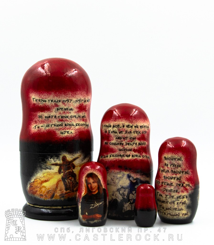 Оригинальная матрешка ручной работы, 5 мест. Высота самой большой матрешки 175 мм, диаметр 88 мм. Высота самой маленькой матрешки 40 мм. Каждая матрешка покрыта 2-3 слоями прозрачного лака.