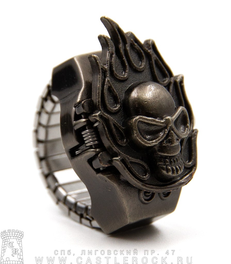 Часы-Перстень с Крышкой Череп в Пламени