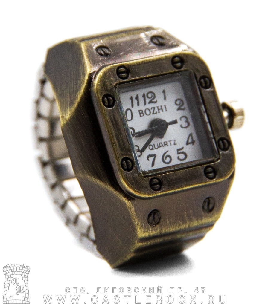 Часы-Перстень Циферблат Белый (квадратный, бронза)