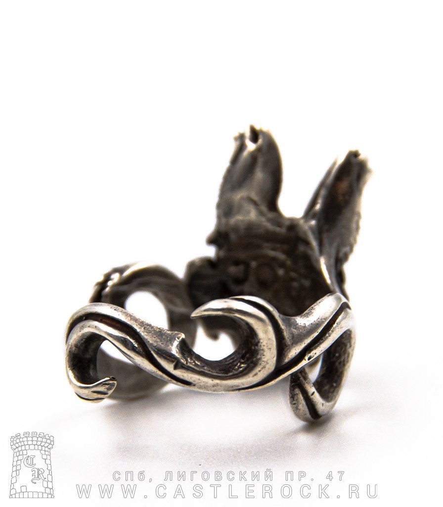 Разъемное кольцо с головой рыси, символизирующей хитрость и остроту зрения.