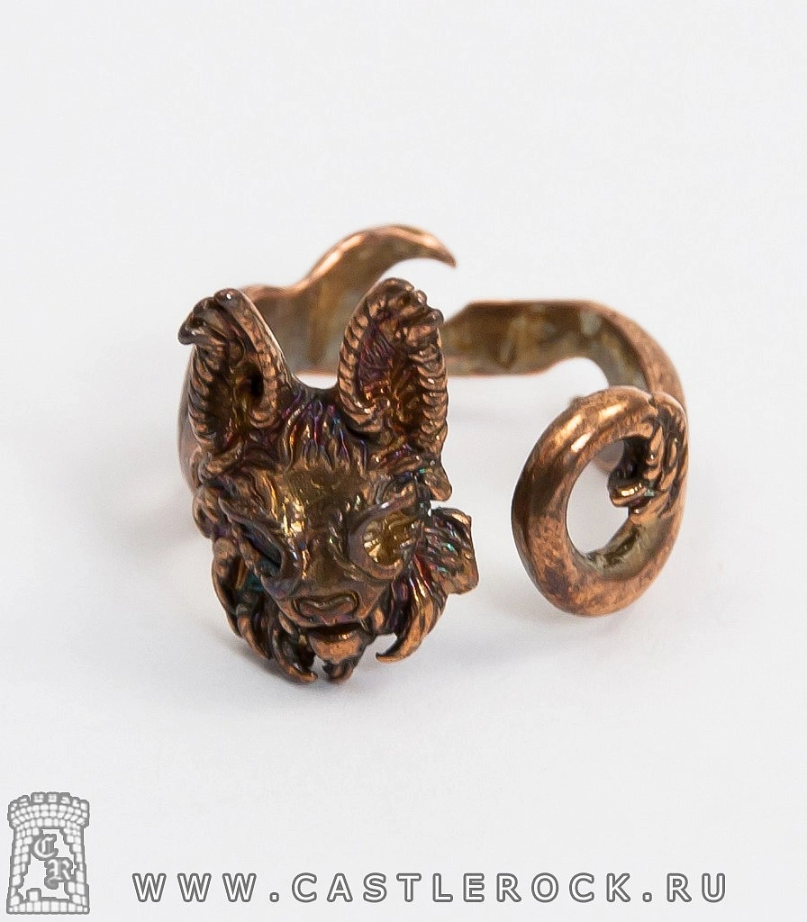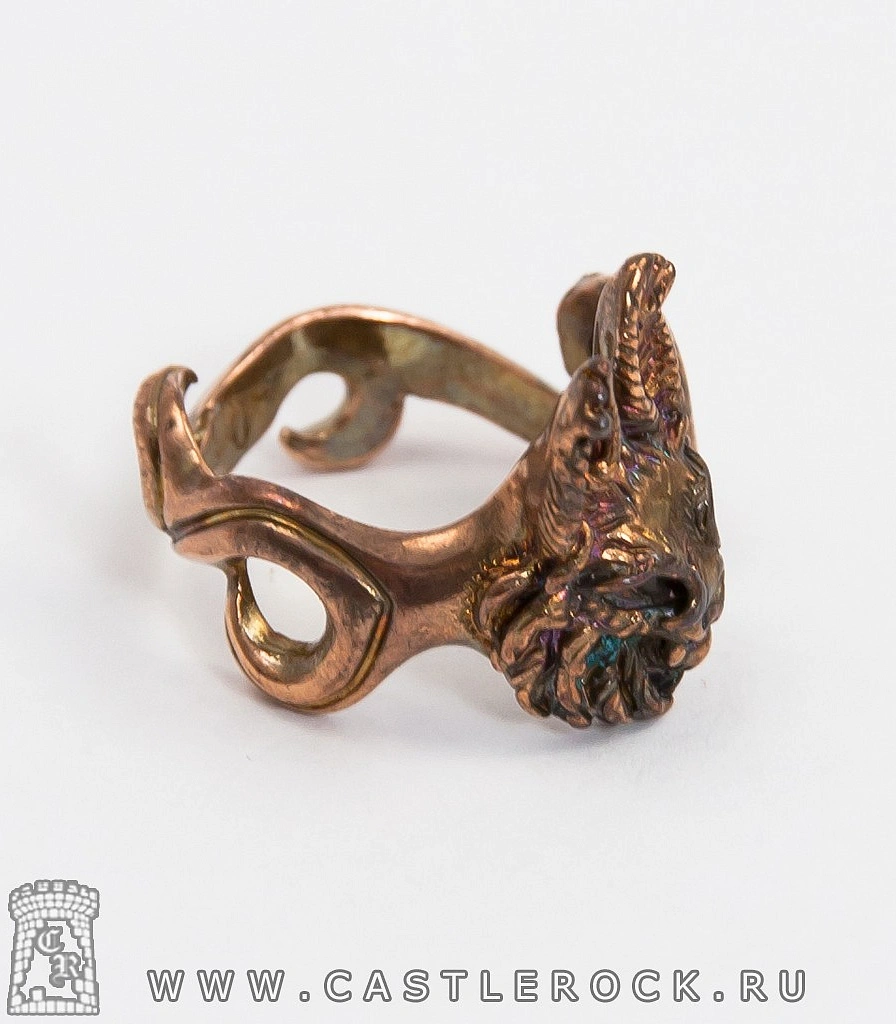 Разъемное кольцо с головой рыси, символизирующей хитрость и остроту зрения.