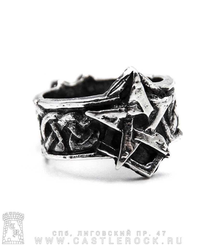 Кольцо Пентаграмма и Орнамент (широкое)