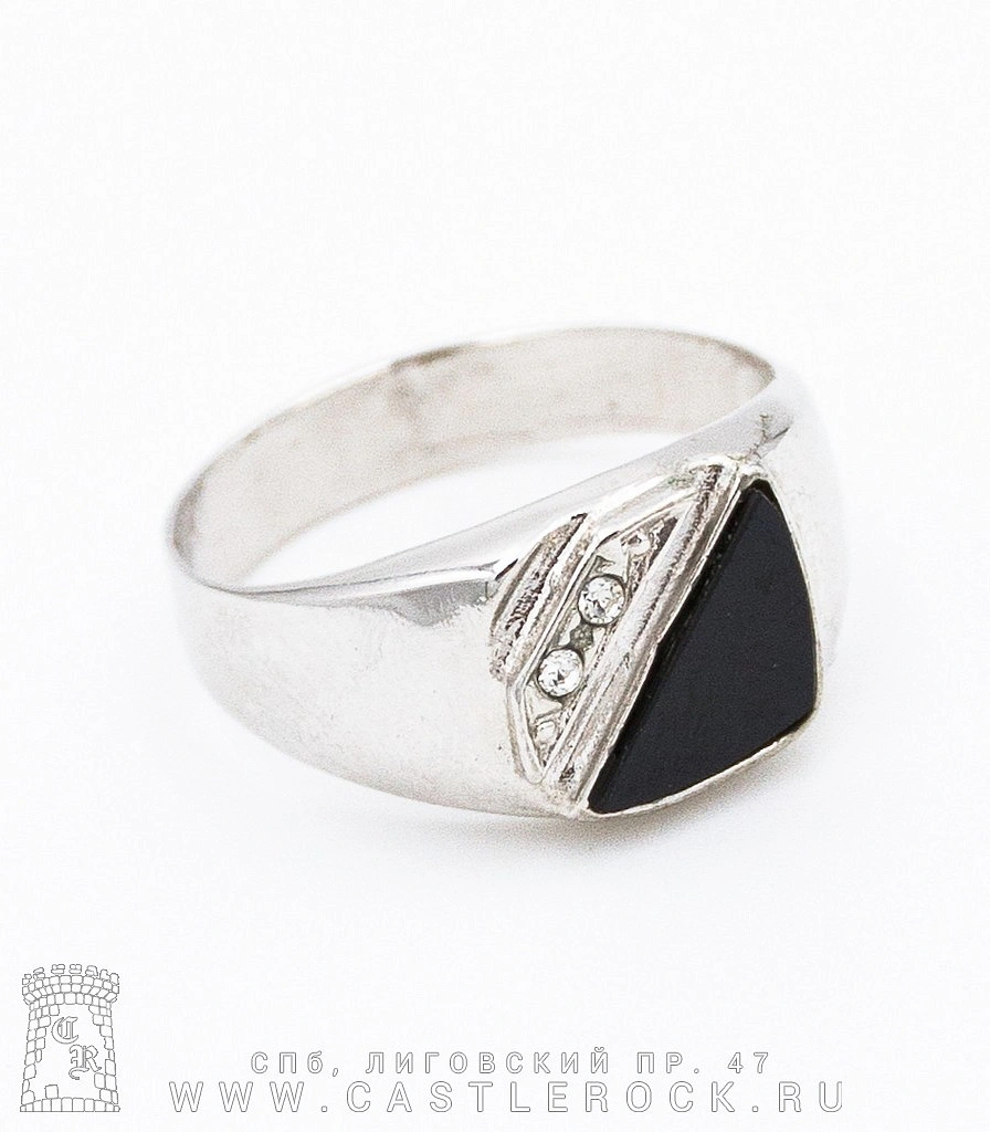 Кольцо с Черной Вставкой и Стразами (широкое)