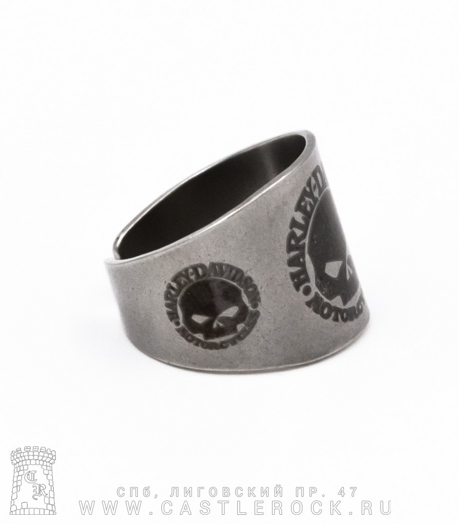 Кольцо Сталь с Гравировкой Harley-Davidson (череп, безразмерное)