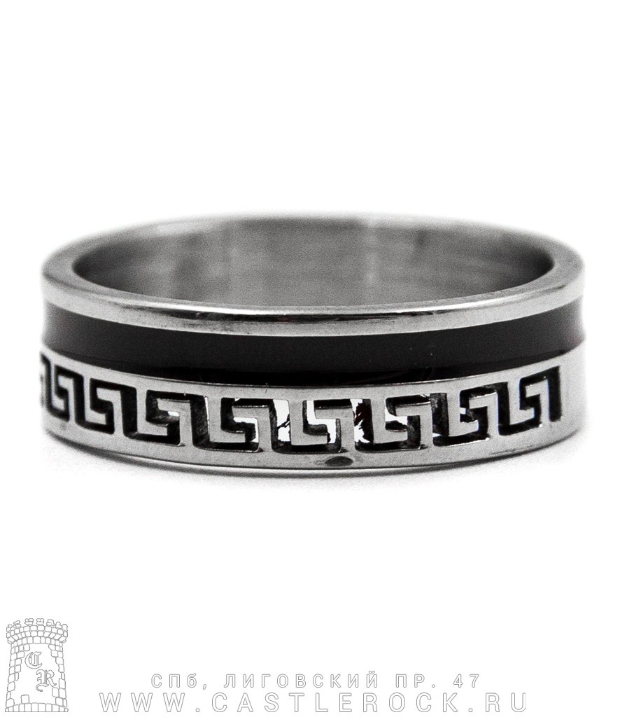 Кольцо стальное Меандр (прорезанный, полоса черная)