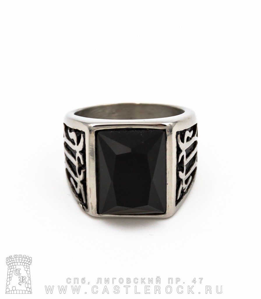 Перстень с Камнем Черным (вензеля, широкий)