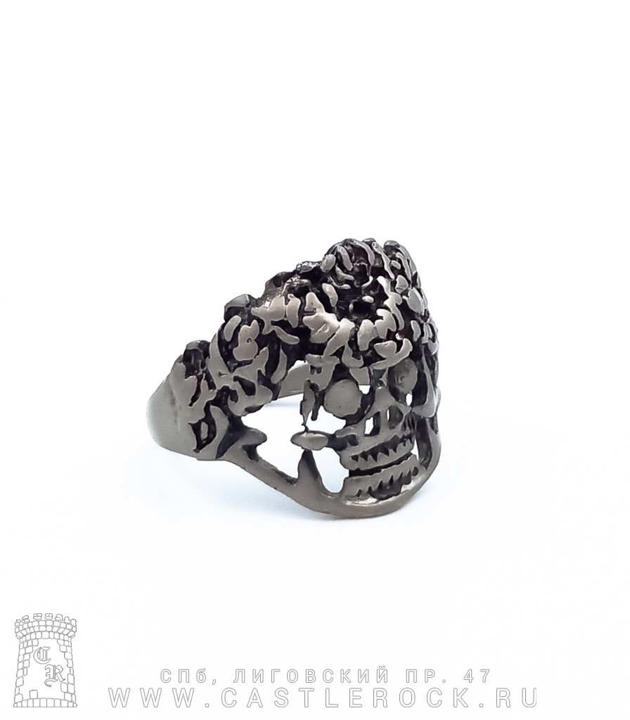 Перстень сувенирный Череп в Цветах (матовый)